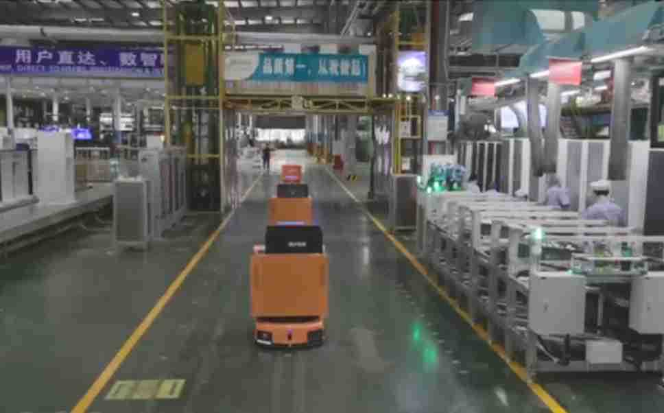 为车载冰箱物流配送打造的智能解决方案,,,,包含产中物流通过潜伏举升AMR搬运至线边,,,,产后成品物流智能仓储,,流程包含产中物流智能齐套入库,,,,线边安灯叫料AMR智能配送至线边,,成品入库、、、、出库,,,通过无人堆高车机器人,,,智能仓储管理替代人工作业管理,,,,实现更高存储、、、、更高效率、、、更具柔性化的解决方案。。